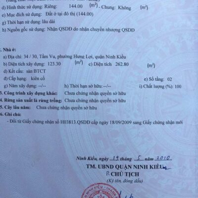 Bán biệt thự mini phường Hưng lợi Ninh kiều nNgang 9×16=144m hoàn công 262,8m lầu đúc rất chắc chắn…